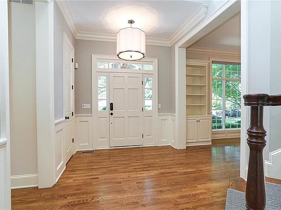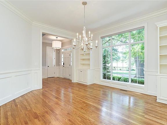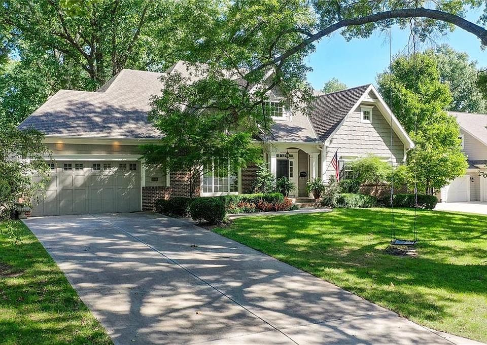 Charm & character of Leawood in the beauty of a new home. Chef's dream kit offers Viking apps, white cabinets, white subway backsplash, beautiful island w/ bar seating & large pantry. Oversized dining room. Butler's pantry. Main floor master, spacious spa like master bath. Fabulous finished lower level with 5th bedroom, full bath & workout room. 2nd level bonus room/office. Home boasts hardwoods throughout, walls of windows, built- ins galore, mudroom & tandem 3 car garage. All nestled on a treed flat backyard.