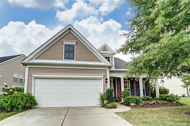 Highly sought after Auburn Place convenient to Blakeney/Ballantyne includes lawn maintenance. Main floor master suite with large walk in closet, dual sink vanity, and glass enclosed shower. Open floor plan with two-story great room with gas fireplace, breakfast room and spacious kitchen with granite countertops, newer appliances, center island and pantry. Dishwasher and refrigerator less than 18 months old. Main floor guest bedroom with attached full bath. Open loft and 3rd bedroom with attached bathroom upstairs. Screened in back porch leads out to beautiful fenced backyard with private English-style garden. In-ground irrigation.