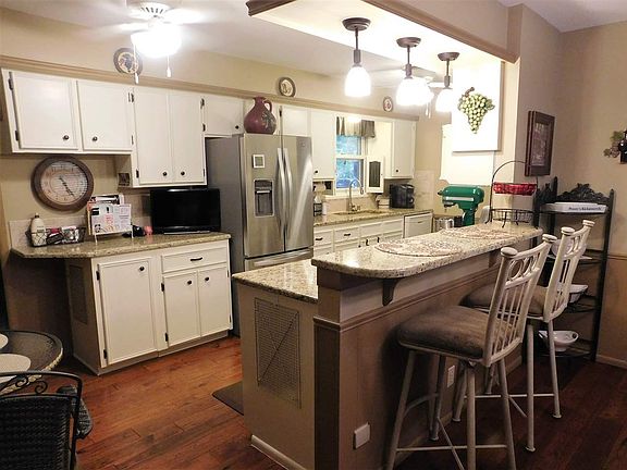 Immaculately maintained and updated all brick home on a quiet cul-de-sac. Tiled entryway take you to the kitchen that has been beautifully updated with wood floors, granite countertops, stainless steel appliances, the new Whirlpool refrigerator is staying with the home, a perfect drop zone area, and a raised breakfast bar. Off the kitchen is a half bath and main floor laundry. The dining room transitions into the large living room with a cute bar area. There is a bonus room off the living room that has been opened up into an office but could be closed back off to easily make a 3rd bedroom on the main floor. The two main floor bedrooms have plenty of room for buyers with large bedroom furniture. The master bedroom has an attached bath with granite countertops, a walk in shower, and separate sink and vanity areas. Guest bedroom features duel closets, one is a walk in. The hall bath has been updated with tile floors and granite countertops. Huge basement rec room features a stone wall and fireplace. 3rd large bedroom and full bath complete the finished area of the basement. Tons of storage in the unfinished area, would make for a perfect workshop and still give you ample room for storage. Beautiful, oversized back deck are the perfect place to relax, the sun gazebo will also stay with the home. There is a community space behind the home that leads to the neighborhood pond that give you plenty of grass area without the maintenance. A small area has a wrought iron fence off the garage that is perfect for pets. All of the big ticket items on this home have been replace with excellent quality products keeping the utility bills low. The roof was replaced in 2012 with a 50 year impact resistant roof for great insurance rates. Newer heating, air, hot water heater, additional blown in insulation was installed in the attic, new driveway, and sprinkler system. Dont miss this beautiful, low maintenance home!