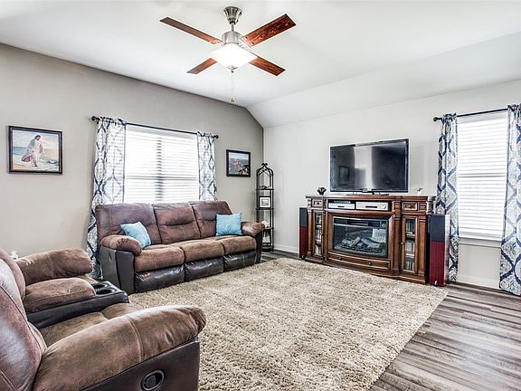 This Gorgeous Split 3 Bedroom sits on a larger lot giving the homeowner more space between homes. Kitchen, Living, Family room and Dining have designated spaces with Open Concept Living. The Owners Suite sits in the back of the house just steps from the back patio with a Huge Bathroom with a separate shower and tub. Walk in closet features access to the laundry room and extra electrical outlet currently being used as second office due to the COVID 19. Outside is completely bricked back covered patio to enjoy the large backyard. Energy Efficient includes Radiant Barrier, Low E Windows, Programmable Thermostat, Etc. The refrigerator is staying with home and the decorative fireplace in living room is negotiable.
