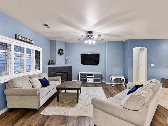 Fantastic Riverlakes home in Eagle Ranch with a Pool & PAID Solar! This 4 bedroom, 2 bath home is located close to the end of a cul-de-sac but near your favorite shops, golfing, dining and schools. Lovely great room floor plan features arched doorways, tile and wood laminate flooring, and plantation shutters and ceiling fans throughout. Great room is perfect for family gatherings with a corner fireplace and adjoining kitchen with stainless appliances, center island with seating, gas cooktop, and separate oven. Low maintenance backyard includes a refreshing in-ground swimming pool with raised deck and sheer descent waterfall, huge covered patio with four exterior ceiling fans, fencing to secure the pool, and a small grass area. Perfect NW location for your family. Schedule a showing today!