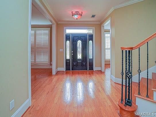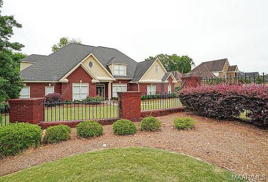 CUSTOM BUILT BEAUTY in Huntingdon Ridge! Large corner lot with TWO-CAR garage, large parking pad, privacy fenced yard, sprinkler system and well for irrigation. FULLY RENOVATED KITCHEN with new granite countertops, backsplash, cherry wood cabinets and new stainless steel appliances. Kitchen also has a large walk-in pantry. Large family room with beautiful fireplace with gas logs and built-ins. Large foyer with formal dining room on the right and a study, formal living room, or bonus room on the left. Master suite is very large and bath has a garden tub, separate shower, private water closet, double vanities and an enormous walk-in closet. Laundry room is spacious and has storage. There are TWO other large bedrooms downstairs with a Jack-n-Jill bath between them. There is also a powder room downstairs. You will enjoy the large screened-in back porch, large backyard, beautiful landscaping, and fruit trees. Beautiful staircase with wrought iron railing leads you upstairs to a large bedroom with a bath and a HUGE BONUS or MEDIA room. There is also tons of ATTIC storage. Home is wired for security. PLANTATION SHUTTERS throughout home. Huntingdon Ridge is a covenant community and low HOA dues. It is also GATED with a security fence and cameras. It is located in EAST MONTGOMERY right across from WYNLAKES and Montgomery Catholic School and just minutes to shopping, restaurants, hospitals and Maxwell and Gunter Air Force Bases!