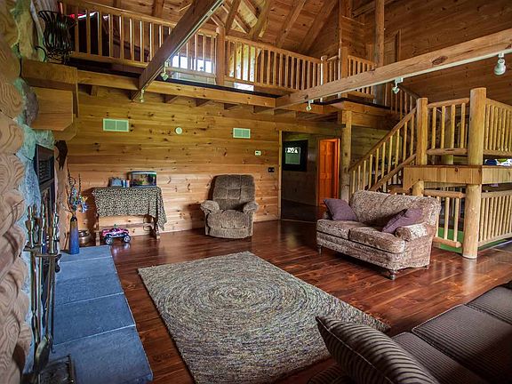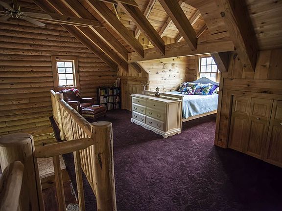 Log cabin with a pole barn setting on six acres far from city lights. Get back to nature in this two bedroom two bath true log home. New kitchen appliances. Big open loft. Relax in a comfy chair and read a book by one of the windows. Master bedroom has a 6x17 walk in closet. Separate laundry room with doors. Two car attached garage is insulated and drywall is installed. Hot and cold water spigot makes cleaning the car quick and easy. Outside find a covered porch across the front of the home. Screened porch and large deck out back. Pole barn can fit most yard toys. Call to see today.