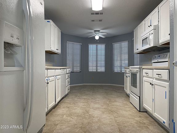 Lots of improvements in this 3 bd 2 ba home. Newly painted kitchen and cabinets, new kitchen tile floor, and new dishwasher. All white kitchen appliances. Tile floor in living room, kitchen and hallways. Laminate floor in bedrooms. LB in right side of house by gas pipe.Please note that listing agent is related to owner. Landlord also has an Arizona salesperson license.