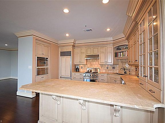 Certified Appraisal on file for this must see 4th floor condo in the Historic Downtown area. Amenities include: two balconies, 9'ceilings,deep crown moldings, gourmet kit w/limestone counters, custom wood cabinetry, quality appliances including sub-zero frig and gas cooking, lg MB w/custom tile bath and WIC. Living Room has a gas log fireplace with custom built bookcases. A large laundry room with ample counters and cabinets. Unit has new wood flooring and fresh paint. Comes w/two secured parking spaces.