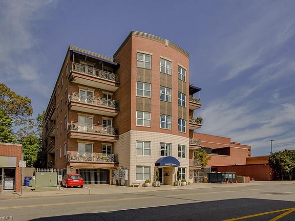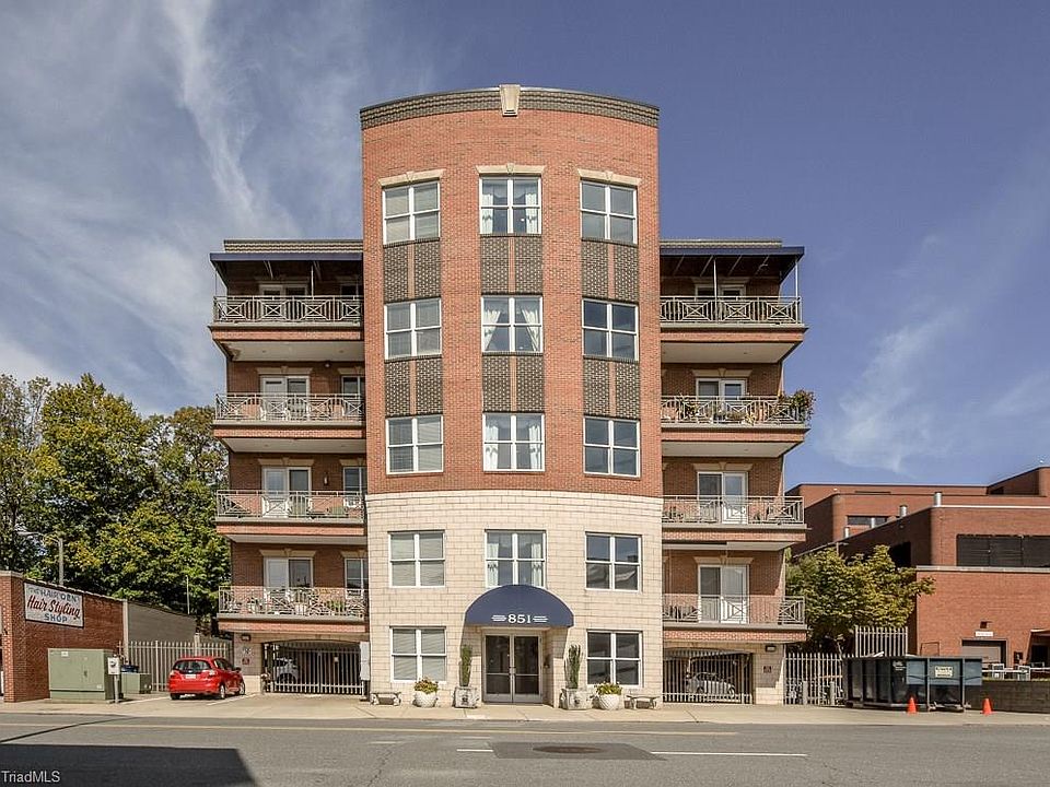 Management cleans the building DAILY and sellers say it's led to a Covid-free building! Superior top floor condo in West End offering amazing views of W-S skyline from BOTH front & side balconies. This lovingly-maintained 2 bdrm, 2 1/2 bath unit w/a den features include: Granite, solid wood cabinets w/roll out shelves & SS in updated kitchen; New heat pump & range in 2019; Updated master bath in 2020; large owner closet; built-in cabinets; Gas logs; HW floors and gated garage w/ 2 parking spaces.