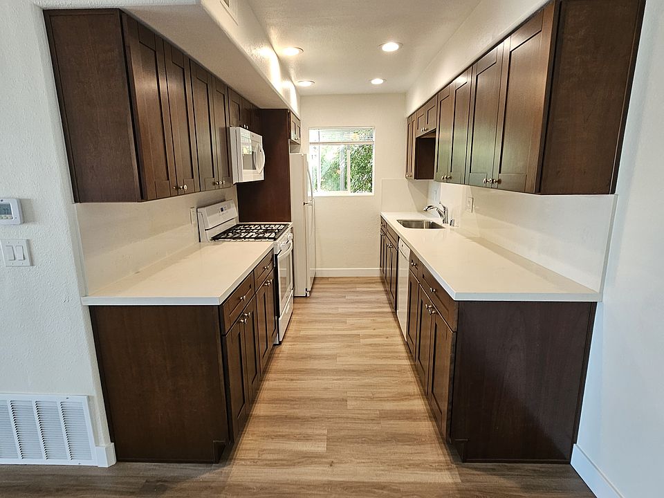 Check out this stunning, newly updated 2-bedroom, 2-bath apartment! This unit boasts paint, wood floors, and fully renovated kitchen and bathrooms. Enjoy a charming patio area and the convenience of off-street parking, making it a highly desirable option. Located right across from the ocean and the picturesque H Street Viewpoint, you're within walking distance to Moonlight Beach and just a few blocks from Downtown Encinitas. Experience the best of the city's beloved attractions, restaurants, The Coaster train and boutique shopping. The natural beauty of the coastline, rolling hills, and scenic viewpoints like the H Street Viewpoint offer breathtaking views and peaceful environments. Encinitas boasts some of the most beautiful beaches in Southern California, including Moonlight Beach and Swami's Beach, perfect for surfing, swimming, and sunbathing. Whether you're looking to relax by the ocean, stay active, or enjoy a tight-knit community, Encinitas has something for everyone. No Smoking allowed. 12 month lease. Owner pays; Water & Trash Tenant pay; SDGE (gas/electric), Cable/Internet Open Unassigned Off Street Parking