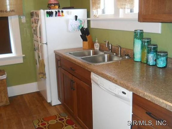 Small detached garage, large yard, unfinished basement, comes with stove, microwave, refrigerator, washer and dryer and new dishwasher. Completely Remodeled bathroom in 2022. Hardwood floors throughout the home. Located in the BEST neighborhood. 2 blocks from the school, 2 blocks from downtown, and 4 blocks from the city park! Great location and great neighbors!