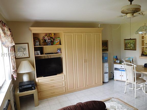 FABULOUS LOCATION! 1 MI. from Beach! ANNUAL COST ONLY $2632 / year! WILL YOU call this home? Ceramic Thru Out, Ground Floor, Fully Furnished, Turnkey Unit. Gorgeous Murphy Bed Wall Unit in living room accommodates 2 additional guests VERY comfortably. Kitchen has also been renovated in the past. Well protected with Accordion Shutters + Roll Down Shutters. Just steps to Heated Pool, Shuffleboard & BBQ. So close to Casinos, Racing, Beach, Walmart, Shopping, Bus, Malls, Highways & Airports. Bedroom has an exterior/rear door for access to Clothesline + Unloading Groceries & Luggage within 5 feet from this door, which includes a security screen door that always offers full security, day or night, allowing excellent cross ventilation. WOW! $130/MONTH MAINTENANCE & $1072 ANNUAL TAXES No Rentals
