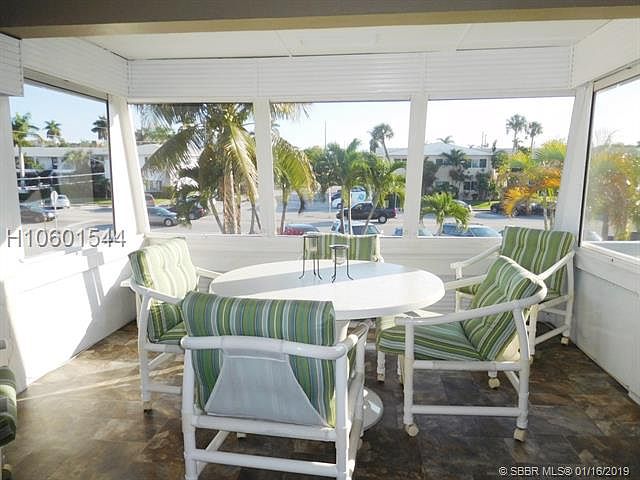 Fabulous Location! ONE OF A KIND! This 1/1 unit is 1000 SF and has a BALCONY ! Enjoy this huge and private Florida room with opening on 3 side facing south! You will get a lots of natural light inside the condo! You can move right-in, this condo is sold furnished, turn key. This coop owns her Land. New hardwood floor thru-out! All openings have hurricane protection. Newer water Heater. Kitchen original with newer fridge & electric cooktop. Bathroom has been update with medicine cabinet, toilet & lighting. 40 year certification done. MAINTENANCE ONLY $130.00 / MONTH and TAXES $1745! Extra storage. Building financially stable. Heated pool, BBQ area & shuffleboards. No rental but immediate family are allowed to use unit. Walking distance to shops, bank, grocery. 1 MILE FROM BEACH!