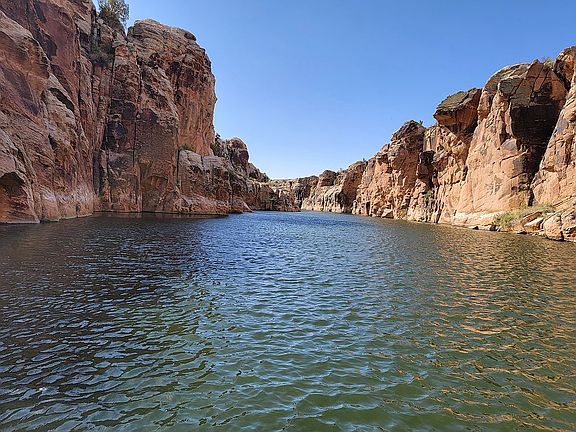 Abundant outdoor activities, great neighbors, off-grid-friendly permits, and end-of-the-road privacy. 300’ well producing 25 GPM. Swim, fish, and kayak from your front door on this private residential lot bordering Clear Creek Canyon with panoramic San Francisco Mountain views. Sitting at 5,000 ft elevation, this residential lot offers four-season living, and unforgettable sunsets. End-of-the-road privacy, yet only 8 miles to stores and services.