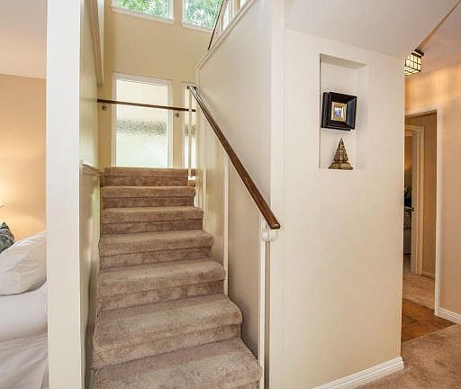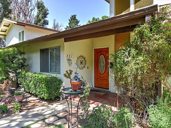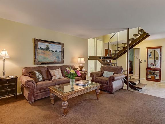 Enjoy mountain views from this super spacious townhouse set back off the street in a very quiet location! New paint, smooth ceilings, updated kitchen, 2 fireplaces, updated baths and 2 car carport with storage. This model has a bedroom and bath on the first floor. The HUGE upstairs master suite is a perfect ''getaway'' with it's own fireplace and a view deck which is ideal for morning coffee or an evening glass of wine. The room is large enough for an in-home office or sitting area. The private sunny patio off the living area makes for great entertaining and good flow with the kitchen, dining and living room with fireplace. This lovingly cared for home has wonderful energy and is a delight to show! 2 pools!