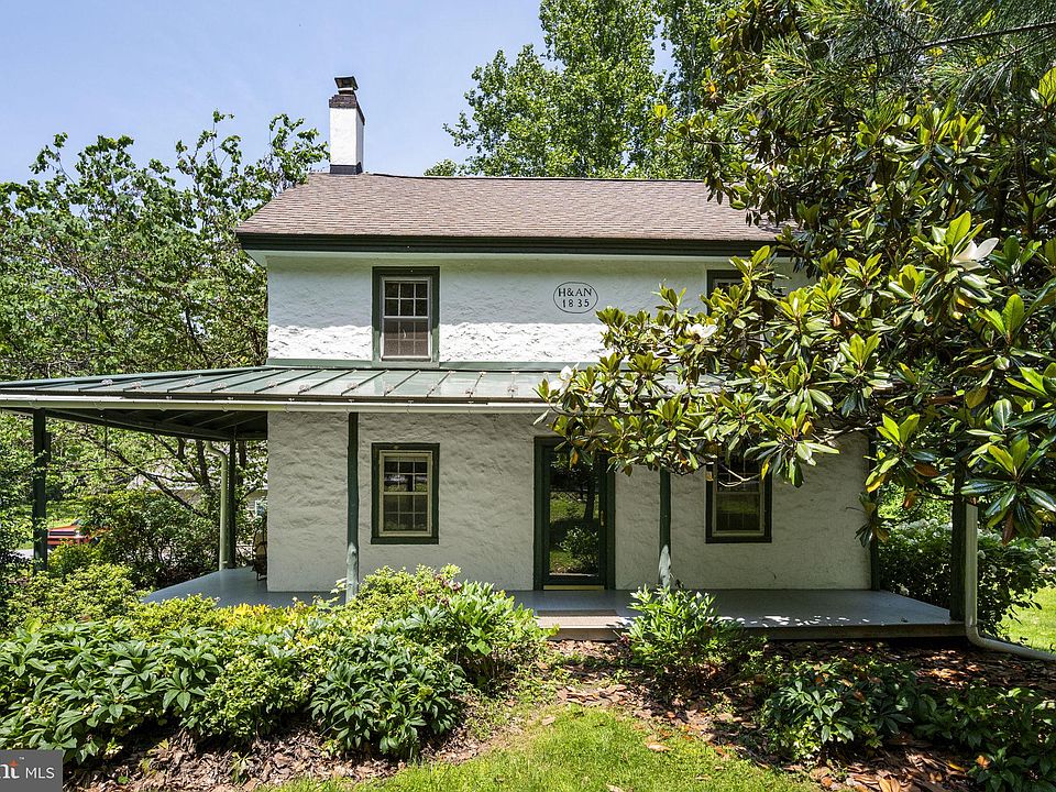 Built in 1835 by Henry & Ann Nichols, this historic colonial sits on 2.56 wooded acres, blending timeless character with some modern updates. You'll love the exposed stone walls, walk-in fireplace with wood stove, and peaceful natural setting. The updated kitchen features granite countertops and stainless steel appliances. Other improvements include a newer stainless chimney liner, rain gutters with guards, waterproofed basement, 200-amp electric, new well pump, and newer septic. A 1989 addition created a spacious primary bedroom with vaulted ceilings, skylight, and second-floor laundry. Access to the third bedroom is through an adjoining 2nd bedroom. A bonus flex space offers the perfect spot for a home office or creative nook Relax on the composite wraparound porch or rear deck overlooking the woods, or stroll your private walking trail. Enjoy privacy with easy access to Marsh Creek Lake and the Struble Trail. The oversized detached garage offers space for two cars, a workshop, and attic storage. A rebuilt 25x12 “he/she” shed with bluestone floors, oak beams, cedar windows, and 220V power is perfect for hobbies or creative work. The grounds are filled with peonies, hydrangeas, holly, magnolia, and abundant wildlife. While part of the lot is in a flood zone, the house is not, and no flood insurance is required. Don’t miss the chance to own this one-of-a-kind piece of history—schedule your private showing today!