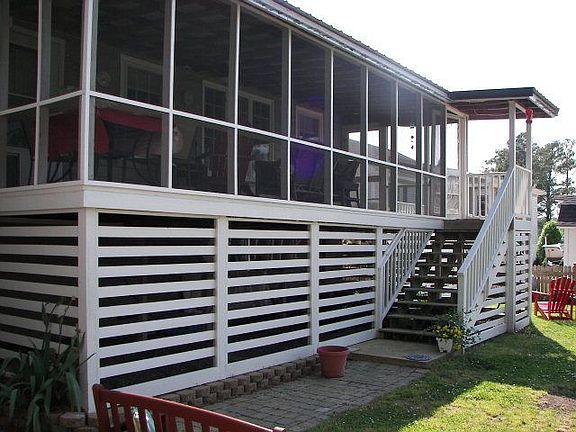 - Porch/Balcony/Deck: Deck, Screened, Enclosed