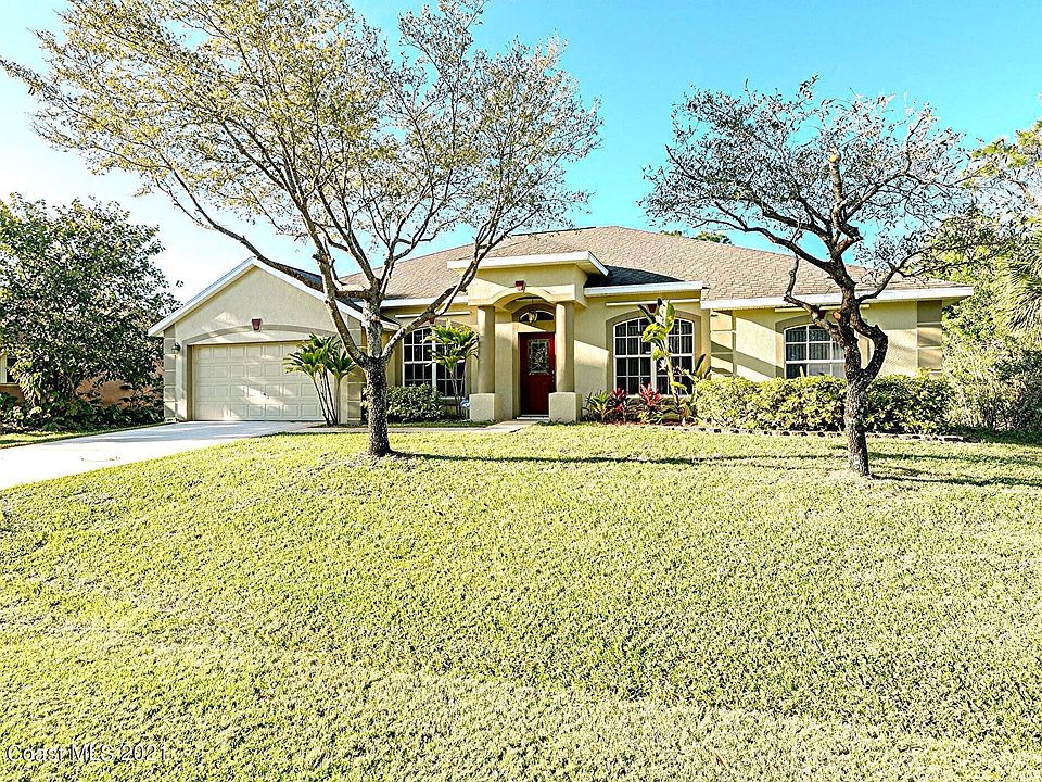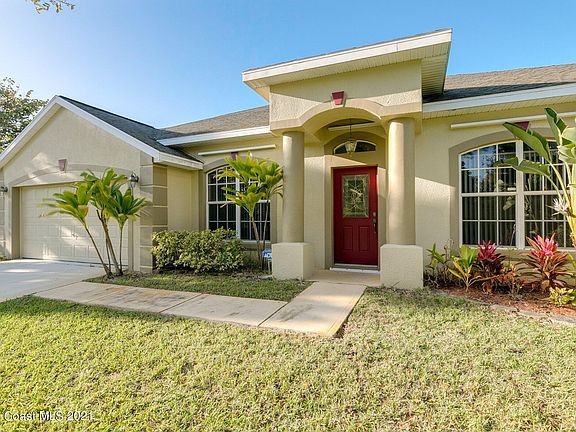 Back on the market. ''Pre-approved'' buyer could not get loan approval. This custom built 4 bedroom, 2 1/2 bath concrete block home with city water is located on a quiet, Cul-De-Sac street. Home is just outside of the Bayside Lakes development and golf course. Just minutes to a Publix grocery store, Walgreens pharmacy, banks, a Dollar store, McDonalds, Walmart and I95. Home features 4 bedrooms plus an office / study. There is a large family room, formal dining room, spacious kitchen with granite countertops, 42'' maple cabinets, and a breakfast area. The luxury master bath has a garden tub, separate shower, and a double sink vanity. Buyers will like the large, trussed roof screened patio for outside enjoyment. Make your showing appointment today. Agents: See remarks.