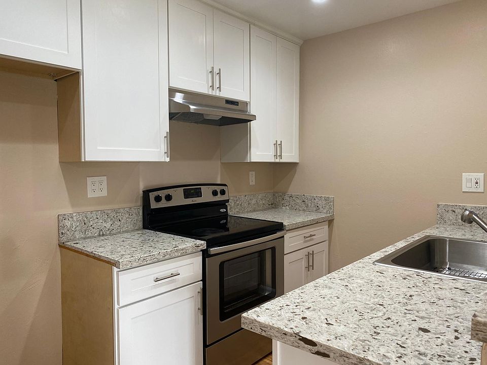 Renovated, large 2 bed/2 bath apartment, quartz countertops, Stainless appliances, recessed lighting, Renovated tile shower and tub enclosures, plank flooring, carpet in bedrooms . 2 Covered carport parking spaces. Vaulted Ceilings in Living Room and Dining Room. Enclosed Patio. Back Bay location with easy freeway access, near CDM high school, Back Bay, Fashion Island and beach. Cat okay. Ground Floor with no one above. Photos are of actual Unit before the current tenant. . Lease is 10 months. At lease renewal you have a choice of going month to month or a 12 month lease.