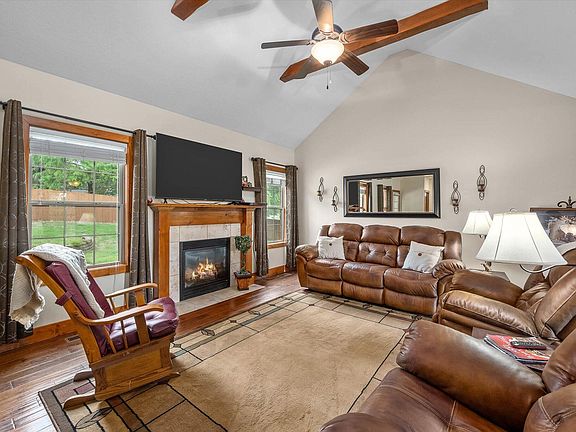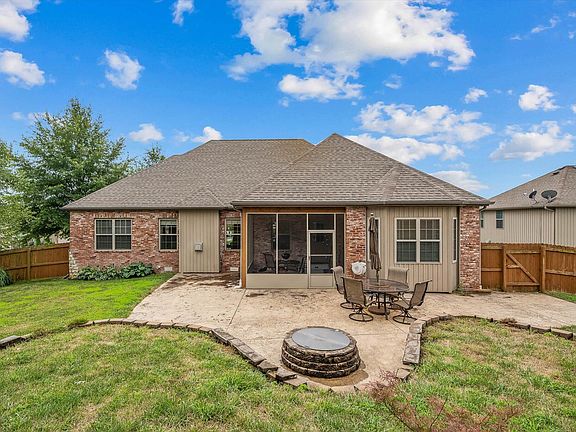 Custom built, all brick, one of a kind home sits on a 1/3 of an acre in desirable Nixa's Columns subdivision. The home has been well maintained and includes a new primary HVAC unit in January 2020 and new roof in July 2020. This spacious 4 bedroom, 3 full bath home, has many upgrades as the first owner was also the builder. The house boasts main floor living with 3 bedrooms and 2 baths plus a bonus bedroom with en suite bathroom over the garage (with its own HVAC unit). The gourmet kitchen is beautifully appointed with custom cabinetry, stainless steel appliances, center island w/vegetable sink, several pull out shelves as well as custom pull out spice racks on both sides of cooktop and a new disposal, refrigerator and dishwasher in the past two years. Additional upgraded finishes include genuine hardwood floors in the main living area, granite counter tops in the kitchen, master bath and guest bathroom and spacious laundry room complete with a large sink and an extra storage closet. The oversized garage includes a life saving 6'x6' Missouri Storm Shelter and is electric car ready with a 240-volt outlet installed. Outside includes a large fenced back yard, custom screened-in patio and stamped concrete living space with a built in fire pit. Possible owner finance with approved credit and terms.