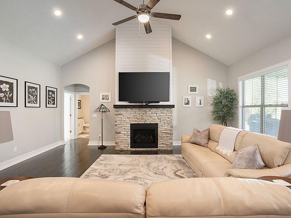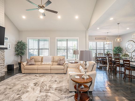 Stunning all-brick 3 bed/2 bath home in the Villages of Wicklow Subdivision! This impressive home offers over 2100 SF on one level and features granite countertops, stainless appliances, and epoxied garage floors! Living room has engineered hardwood floors, a vaulted ceiling, and stone fireplace. Kitchen features a large center island for barstool seating, attached dining area, bright white cabinets, and gas cooktop with hood. Primary bedroom suite offers dual sink vanity, walk-in tiled shower, and a spectacular walk-in closet with custom shelving. 2 more bedrooms, one with vaulted ceilings, share a full hall bathroom with shower/tub combo. Off the 3-car garage is a mud room/laundry room area. Backyard boasts a covered patio area and full fence. Located in Villages at Wicklow which features two spacious pools, clubhouse to host events, ponds, basketball courts, common grounds. Call to schedule a tour today!