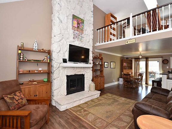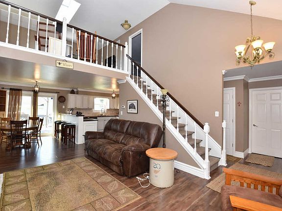 Beautifully updated and well maintained Cape Cod. Open concept main floor featuring vaulted ceilings, wide plank engineered wood flooring, and tons of natural light. Living room features a stunning floor to ceiling stone fireplace. Updated Kitchen complete with white cabinets, stone back splash, butcher block counter tops, and a large pull out pantry. Plenty of room for storage. breakfast bar and dine in area overlook the deck. Sunlit upper loft and private Master BR Suite with walk in closet ! Bathroom features ceramic & marble accents. Lower Level Rec Room is a perfect second living space, with a potential 4th Bedroom, and attached 3rd full bath! Fenced in yard for your fur friends with a covered deck perfect for Summer entertaining.