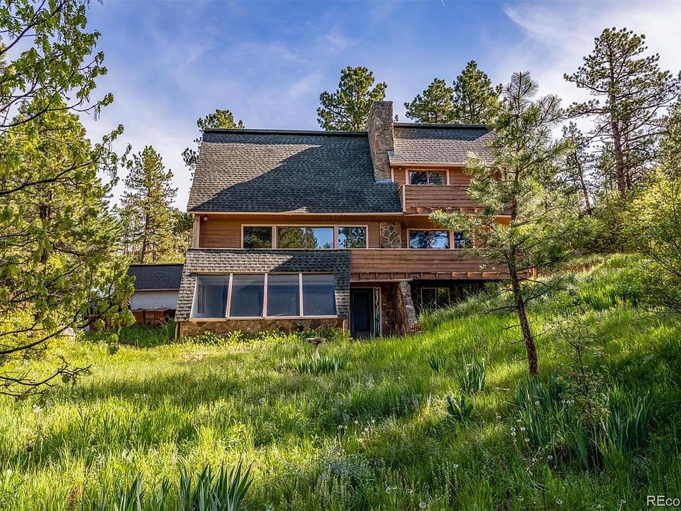 Offering Privacy and Peaceful Surroundings in One of a kind neighborhood; this property in Happy Canyon offers incredible potential to anyone with vision and a tool belt. Chalet style home on 2.3 acres nestled in the pines was designed and built by a couple who enjoyed nature and built their dream home 40 years ago. A unique floor plan, where at one time indoor pools were the rage, the nonfunctioning pool is in the walkout basement. Accessing through garage, its a few steps to main level or a few steps to the basement. The kitchen/dining area is one large room, and on the other side is a huge living room. With the focal point on the floor to ceiling natural rock 2-sided wood fireplace, the wall of windows brings in light and heat for passive solar gain. Step out to deck from living room sliding glass doors to enjoy the beauty of natural landscaping. Off the hallway, on the main level is a bdrm or office and a bath. Up a few stairs to 2nd level hallway where there's a bridge overlooking the living room. On either side of the hall are the bdrms. The master has a small deck, large closet, and fireplace. The 3rd bdrm has an ensuite bath. Insulated attached 2-car garage and a detached 3-car garage, could potentially be a workshop. Natural gas hot water heating system, domestic well and septic system. Inspection and use permit completed before sale. Garage door on attached garage is new, and roof was replaced approx. 9 yrs. ago. Well-built home for Buyers with a passion for remodeling!