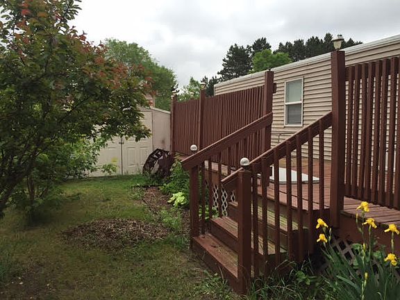 Showings available this weekend!!!!! Updated Home in 2008 - 6"walls, new windows, hardwood floor type in kit.an back living room, both bathrooms updated.. . 16x84 - its a large Single wide. Located in the cleanest park around. Zimmerman Terrace. Buyer has to comply with park rules and pass a background check. The park is pet friendly. Lot rent 305.00 + water. Trash is included with lot rent. We built a 10x10 wood shed with metal roof, and there is another smaller metal shed on lot. Large deck! Porch addition on the home. Metal roof with recent sealant applied. Cash buyers only and purchase is AS IS. Appliances come with it.. everything works great.. The hot water heater could be replaced.. but its functional. Window AC you provide. Not sure on Washer / Dryer The lot backs up to the outer side of the park.. There are no homes or anything, just some trees and open field. Fire pit.. It's a super nice starter place, in between place.. retired, ect. The lot has mature flowering crab trees and landscaping. Inside is nice.. The Axle and Wheels are still under the trailer, so it can be moved out as well. if there are realtor fee's buyer will be responsible for them :) We have completely repainted the inside, so it ready for adding your color and touch.