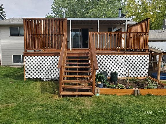 Welcome Home! This home features 5 Bedrooms and 2 Bathrooms, with 2,188 square feet! Upon entering the home, going upstairs, you will find the large living room, 2 Bedrooms, 1 Bathroom, Kitchen with nice cabinets, stainless steel appliances that include a gas stove, tiled back splash and floor, with an area for your table. Off of the kitchen is a sliding glass door leading out to the large deck just re-done in 2020 that is partially covered, perfect for entertaining, along with a good sized back yard with sprinkler system and a raised garden bed! Downstairs there are 2 Bedrooms, 1 Bathroom and the Large Master Bedroom with a Walk-In Closet and wood stove! New Life Proof Vinyl flooring has been installed downstairs. This home also includes Central Air, Water Softener and Storage above garage. Schedule your showing before this home is gone!