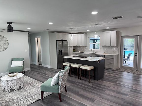 This tastefully remodeled gem is the definition of a turnkey home ready for small families or retirees. This home has a new roof, new impact windows and doors, and boasts a beautiful kitchen with quartz counter top and smart appliances. This home is beautifully designed with neutral luxury vinyl plank flooring and fixtures that speaks peace and tranquility. The backyard is great for entertaining with its newly resurfaced pool and covered patio. Your quiet family oriented neighborhood is waiting for you.