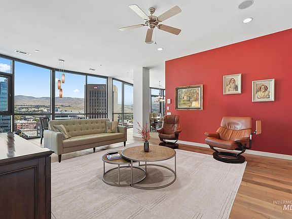 One of the most unique & chic residential experiences in the Treasure Valley. Lofted 16 floors above Boise's downtown corridor, 1601 is one of the largest units in the highly sought after, and award winning, Aspen Lofts. Sweeping 270 degree views of Boise's skyline, framed by the natural landscape of rolling foothills, sunsets and sunrises alike. Absolutely breathtaking! This 3 bedroom, 2.5 bathroom floor plan is unique in the Aspen Lofts, being larger than 90% of the other units, with hundreds of square feet of covered outdoor deck space and unusually spacious interior rooms. Take advantage of Boise's vibrant urban lifestyle, just 190 vertical feet from Boise's best dining, shopping, drinking, rolling and strolling, all within blocks! Elegant finishes depict contemporary styling. New engineered hardwood floors(2023), granite counters, floor to ceiling windows, gorgeous cabinetry. Two deeded parking spaces and a private storage cage. Nothing less than stunning, this is more than a home, it's an experience!!!