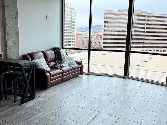 With floor-to-ceiling windows, the home provides clear views of the foothills and city. The building is secure, and you'll be just an elevator ride from the 8th Street district with groceries, restaurants, parks, the river, BSU, and outdoor recreation all close by.