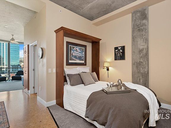 Unwind to breathtaking views of the Boise skyline and picturesque foothills through soaring 10-foot windows in this exceptional 7th-floor Grand Studio at the Aspen Lofts. The contemporary open floor plan, complemented by high-end finishes, creates an inviting space for a simplified, lock-and-leave lifestyle in the heart of Downtown Boise. Embrace the vibrant city scene with Idaho's finest restaurants, live entertainment, and nightlife just steps from your door. Living here puts you within easy reach of the Grove, BoDo, and JUMP, as well as Boise State University, the scenic Boise River Greenbelt, hospitals, shopping, theaters, and more! Enjoy stress-free living with HOA coverage of water, sewer, trash, building security, high-speed internet, and a dedicated pet relief area. Private gated parking and rental opportunities are available. Conveniently located just 4 miles from Boise International Airport, this is the perfect urban retreat in Idaho.