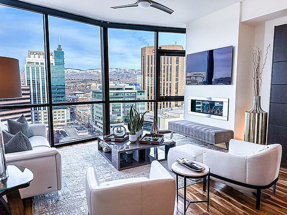 FOR SALE BY OWNER, please call 208-319-4107. Experience downtown at your doorstep! Enjoy breathtaking views from this single level luxury condominium, located in the heart of downtown. Enhanced by a stunning remodel, this open floor plan residence is surrounded by walls of glass 10' tall, showcasing the Boise city skyline. Follow the sunrise to sunset in this dramatic, and low maintenance high-rise condo. Open kitchen, perfect for entertaining. Spacious living rooms, comfortable retreats, and a private patio; truly special lifestyle property. 2 private parking spots 2 private storage cages