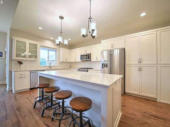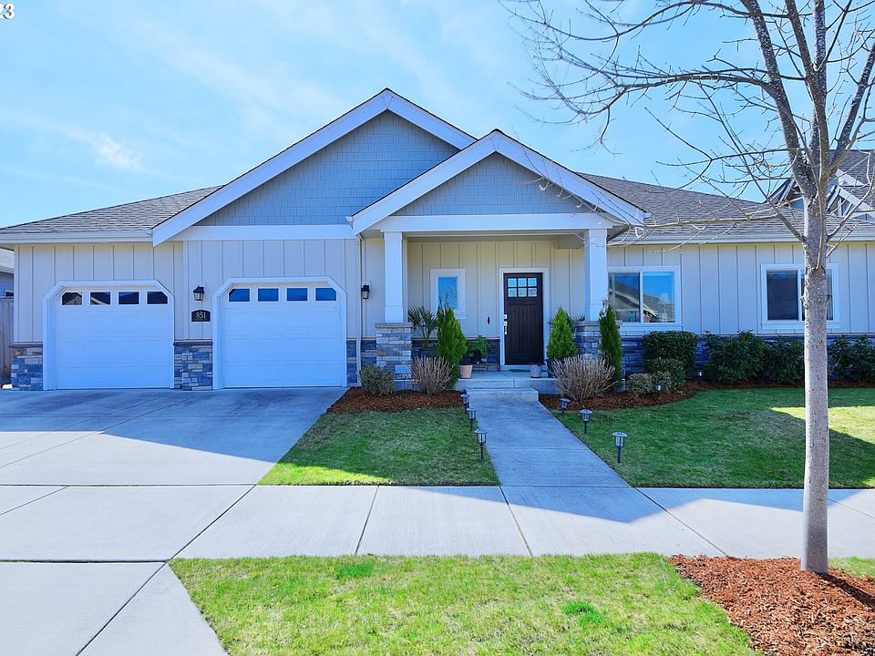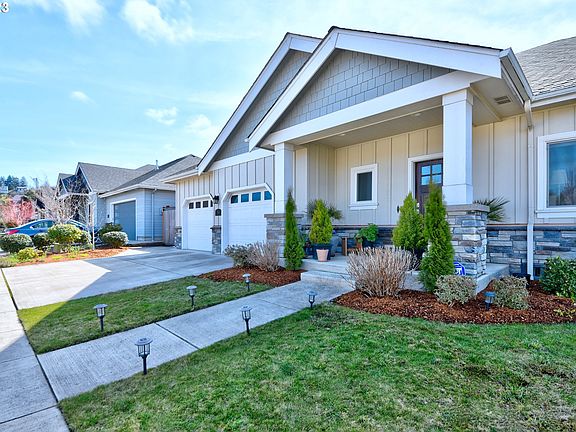 You will appreciate the custom amenities in this single-level Anslow & Degeneault built home in Osprey Park. Light & bright kitchen w/quartz island, stainless KitchenAid appliances, and lots of cabinet space. Handsome stone gas fireplace in LR with luxuriously tall ceilings throughout. Primary suite w/walk-in closet, double sinks & glass shower. Sunny backyard w/large covered patio, sprinklers, gas bbq hookups & small garden shed. Quiet neighborhood near Autzen & river paths. Solar + EV charger.