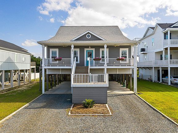 Custom built island home with view of the Intracoastal Waterway from the rocking chair front porch! Tucked beside the last set of canals overlooking the waterway, Heron Landing's neighborhood offers a peaceful setting for Coastal Carolina living. A huge back deck is the perfect spot for dining, entertaining & relaxing, while enjoying an expansive view of the undisturbed marshland, reaching out toward Ocean Blvd West & the Atlantic Ocean. Easy beach access is just up the street via Swordfish Drive. On the ground level you will find plenty of covered parking & patio space, a huge enclosed storage room & a nice big fenced in back yard. Upon entering you are immediately greeted by gleaming marble flooring in the tall, open foyer, which leads to the great room & kitchen. Solid pine paneled walls & coffered ceilings provide texture & visual interest in this spacious area. A sparkling gas fireplace brings warmth to the space. Polished hardwood oak flooring & tall windows capture natural light throughout the main living space. A stand out feature of the well equipped kitchen is an F. Bertazzoni 6-burner gas range with convection oven capability. Gleaming, unique granite countertops and custom cabinetry blend well with the modern finishes. Just off the kitchen you'll find a nice sized laundry room with additional storage cabinetry and a convenient utility sink. A large utility closet/pantry is adjacent to the kitchen. The master suite & private guest suites feature large cedar closets, bead-boarded vaulted ceilings, each with a private bath. A third well proportioned bedroom offers private access to the hall bath along with a peaceful water view. This home is being offered fully furnished as shown, with just a few seller exceptions. Custom built in 2015, this home is a perfect choice for making your dreams of island living come true! Holden Beach, NC is a quiet, family friendly destination, perfectly located within 30-40 minutes from N. Myrtle Beach, SC & Wilmington, NC.