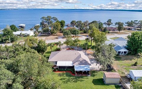 Beautiful 2004 Built 3 Bedroom, 2 Bath, half acre lot, just off the shores of popular Lake June. Included with the purchase of this home also includes deeded Lake June access with a dock and gazebo. A great opportunity to enjoy waterfront amenities with out the high tax bill. Brand New Roof, Fresh landscaping and more. Split floor plan. Lovely spacious island kitchen with white cabinetry. Plantation shutters throughout. Nice screen porch on the front of the house with a double door entry. There is also a large screen porch on the back of the house too! Enjoy waterfront views from the front and open acreage views from the back. Large master bedroom with private en suite that features a walk in shower and large walk in closet. Two additional bedrooms and guest bath on the other side. Living room, kitchen and dining has vaulted ceilings and there is even a wet bar in the living room. Attached 2 car side entry garage, new storage shed. There is also a roofed lean to for additional covered storage.