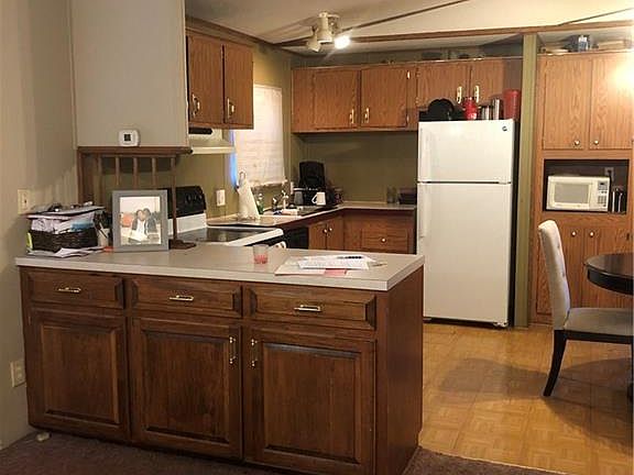 WHAT A DEAL! Nicely maintained mobile home on almost 3/4 of an acre. Relax on one of two decks. Nice wood stove to help save on heating bills! All appliances remain including microwave! All living room furniture to stay. (knickknacks, tv, and stereo do not convey) Guest bedroom furniture stays also. Shed included with mobile home. Guest bath floor to be redone.