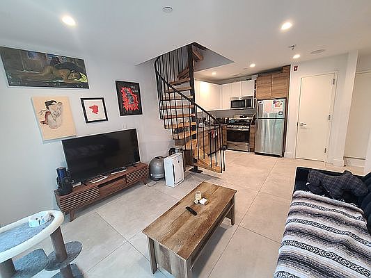 High end meets Brooklyn chic with brand new, Duplex 2 bedrooms 2 bathroom Bright living-room with over size windows that cast soft natural light throughout the apartment. Gourmet kitchen with stainless steal appliances and Granite counter top, Large bedroom & Living room. Bluetooth ceiling speakers Full bathroom with sparkling marble Virtual doorman Washer/ Dryer in unit AC unit Balcony Floor to ceiling windows in living room and bedroom. All that located just a few steps away from public transportation, shopping and great restaurants
