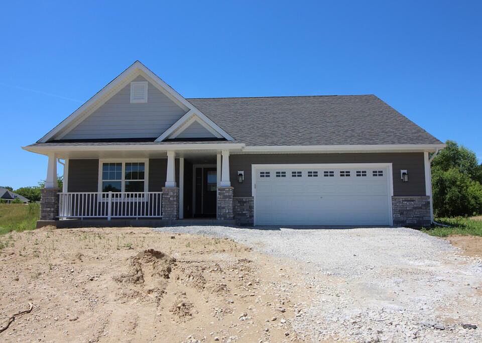 Beautiful new construction ranch in progress on a partial side lookout basement lot in Fairway Woods subdivision in Twin Lakes. The Hemsworth ranch home plan is a split bedroom design with two bedrooms and a bathroom just off the foyer and the master suite in the rear of the home just off the kitchen. The open floor plan features an expansive great room and kitchen with dinette. The master bath has double sinks, tall vanity & walk-in closet. This home also has quartz counters throughout, and a mixture of luxury vinyl plank, carpet and vinyl flooring.