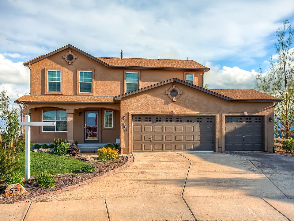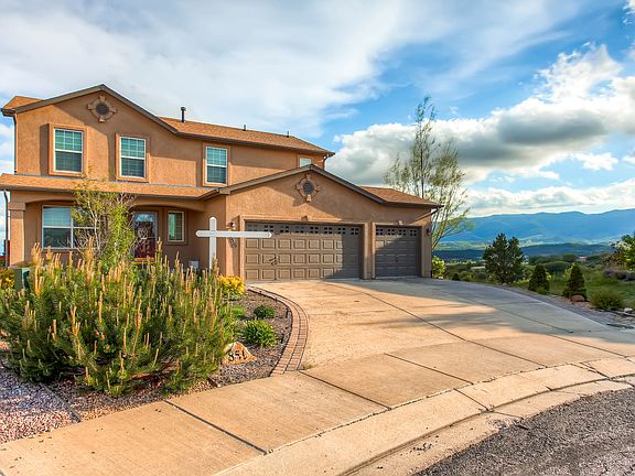 Quiet cul de sac; Expansive view of the Front Range, Air Force Academy, & Pike's Peak; Spacious, professionally landscaped & fenced yard for children/dogs to play; Large deck just a few steps off the kitchen for outside entertaining (perfect place to grill & watch the Academy's Fourth of July fireworks or Thunderbirds flyover); Large master suite; Custom blinds; In wall/ceiling surround sound in basement movie room with walk-out to yard; Basement guest room with mountain view & full bath; Adjustable gas fireplaces in basement & main floor; 3 car garage with built-in storage shelves; Large storage shed hidden under deck; Top performing District 38 schools; 5-7 minute commute to Air Force Academy's North Gate; Easy access to I-25 provides straight shot to Colorado Springs, Castle Rock, Denver, or Fort Carson MBdr=15'x13' - Bdr2=16'x11' - Bdr3=12'x11' - Bdr4=13'x10' - Bdr5=13'x10' - LivRm=13'x20' - DinRm=12'x10' - Kitch=13'x10' - FamRm=24'x15'