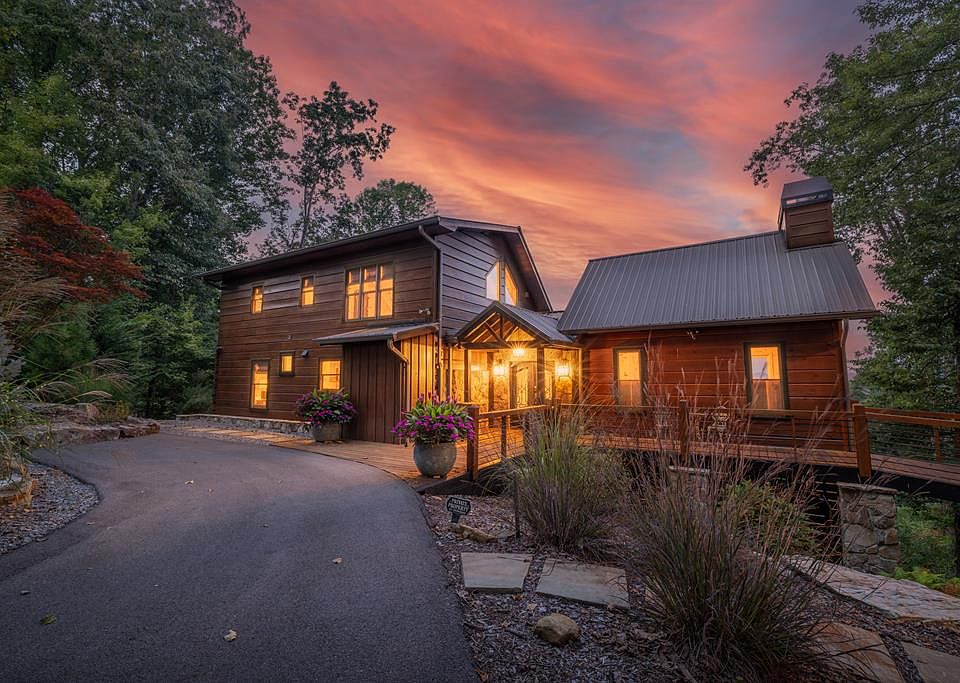 Welcome to your dream retreat in the Cherry Log Mountains, perfectly nestled between the vibrant downtowns of Blue Ridge and Ellijay. This charming cabin offers unparalleled long-range mountain views and promises a serene lifestyle amidst nature's beauty. As you approach, you'll be greeted by the home's gorgeous curb appeal, accentuated by professional landscaping and a colorful sanctuary of plants thriving on an easy-care irrigation drip system. Step inside to discover a professionally designed, creatively inspired space that seamlessly blends luxury with a mountain vibe. Every window in this cabin frames sprawling, picturesque views, immersing you in the natural splendor of the surroundings. The kitchen is a culinary delight, featuring upgraded granite countertops, high-end KitchenAid appliances, and a convenient butler's pantry complete with a coffee and wine bar and a rare commodity, a GARBAGE DISPOSAL! Cozy up in one of the three spacious bedrooms, each elegantly designed to offer modern comfort. For those who love outdoor relaxation, the expansive decks provide the perfect setting to unwind while enjoying 2.38 acres of private, tree-hugged serenity. This property offers endless possibilities to personalize your sanctuary. Whether you choose to expand into the fully stubbed, ready-to-design apartment garage or create a bonus room in the bottom deck basement area, there's ample room for growth. Whether you're seeking a family getaway, an investment opportunity, or a space equipped for full or part-time easy living, this cabin is a versatile haven ready to meet your every need. Embrace the tranquility and luxury of mountain living in this exceptional Blue Ridge cabin.