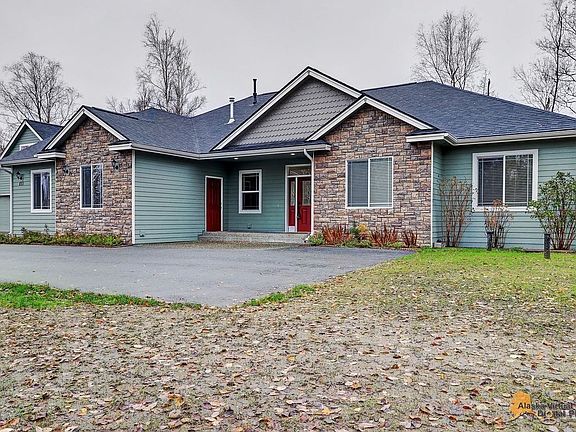 Savy buyers take note! This beautiful custom ranch style home w/ lrg garage plus the detached shop/garage w/ upscale apt above, is perfect for MIL,rental income or home business. Located in Wasilla City limits, close to everything.Both the home & apt are finished w/ granite, laminate, custom tile work, etc. The home features a grand entry w/ coat rm off of it, chefs kitchen w/ see supplement.