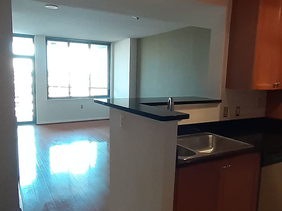 Spacious 1 BR, 1BA unit on 10th floor with unobstructed views. Gourmet kitchen with SS appliances, granite counters and breakfast bar. Gas fireplace and access to private balcony in living room. Large primary bedroom with walk in closet and washer/dryer. Full bathroom can be accessed from hallway or bedroom. Building offers great amenities including 24/7 Concierge, exercise room, roof top pool, business center, movie theater, party room and library. Located close to shops, restaurants, metro and much more! No pets, no smoking. Minimum one year lease with option for renewal or longer initial term. One month's rent as security deposit. $45 application fee per applicant. One parking space included. Water, sewer, and trash included in rent. Tenant responsible for gas, electric, and cable/internet/phone. Amenities include roof top pool, exercise room, and business center.