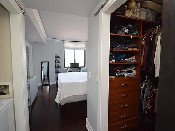 Newly renovated condo in The Continental with hardwood floors, base and crown molding with lighting recessed in the crown molding in the living room, frosted glass doors with custom door frames, barn doors for the second bedroom door, laundry room, and walk in closet to maximize space. The kitchen is a chef's dream with a new matching set of dark stainless steel kitchen appliances, organizers in every lower cabinet for maximum efficiency, large gourmet kitchen sink and faucet, and chalk board wall. The living room is wired for surround sound. The bedroom has a custom walk in closet and built in shelving. The laundry is across from the walk in closet for easy access. The bathroom has been redone with a new toilet, vanity, mirror, curved shower bar, rainfall shower with body jets and hand held hose, glass shelves, and custom wood shelves in the linen closet. Enjoy the views Northern Virginia and DC from the balcony. The building has a party room and gym on the penthouse level, a theater room, business room, 24 hour concierge, and a rooftop pool and brand new patio area with gas grills, fire pits, and lots of seating. The building is two blocks from the Ballston Metro and three blocks from the newly renovated Ballston Quarter mall opening in Fall 2018 as well as the new Ballston Exchange across from the mall. There are many great restaurants in Ballston and the surrounding area.