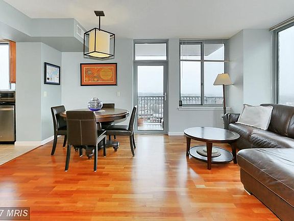 OH 4/9 1-4 pm. 17th FLOOR CORNER UNIT W/ BALCONY- 1,296 sf & DC views! 2BR/2BA unit with open floorplan. Hwd floors + new carpet. Upgraded SS appls & lighting in unit. Kit island w/ granite adds counter space! In-unit W/D. Both BR's have WIC. Garage parking space & xtra storage unit convey. Pet friendly.Bldg offers rooftop pool & terrace (summer '17); theater, fitness center, party room & more!!!