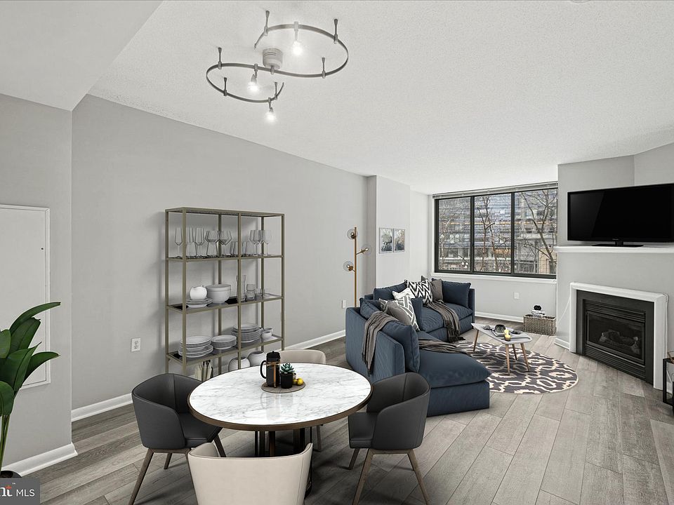 Welcome to the Continental! Located in Arlington's vibrant and centrally located neighborhood of Ballston, this 1 bed, 1 bath condo provides access to the best of the local DC and Arlington offerings. This recently renovated condo showcases brand new modernized grayscale flooring throughout both the main living area and bedroom, a built-in fireplace feature with mantel, all black appliances, an in-unit washer dryer, a bedroom walk-in closet, fresh painting, and stunning views of downtown Ballston. The kitchen offers a wide birth of space for cooking gourmet meals, generous countertop depth, and an island to assist in food preparation and presentation. The Continental Condominiums is an amenity rich building boasting a fitness center, rooftop pool, rooftop terrace with lounge seating and fire pits, rooftop grilling area with a walk up bar for entertaining guests, conference room, business center, community lounge, and concierge. Walking distance to multiple metro stations and local public transportation, retail, restaurants, nightlife, and many of the areas favorite Arlington destinations. Ballston also offers a wide variety of outdoor activities, walking paths, dog parks, and outdoor recreation areas that may easily be accessed from the front door of The Continental. The unit includes one parking spot (Parking G-179) and one storage space (S-11).