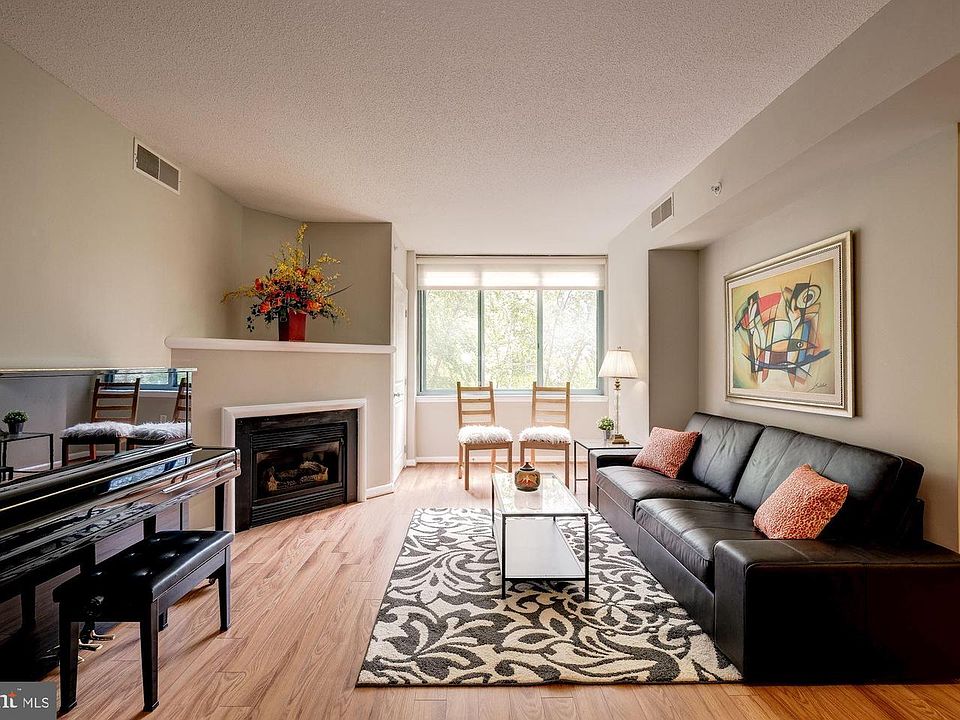 This third-floor condominium, 1328 sq ft, with two bedrooms, two full baths and an open floor plan with a living-dining room combination and an island kitchen in the Ballston corridor of Arlington, Virginia is urban living at its best! Set in The Continental at Ballston, the condo unit offers huge picture windows overlooking the condo building courtyard and that of the adjacent Westin Arlington Gateway Hotel, whose grounds offer a park-like setting with benches and beautiful landscaping for serene views from the condo unit. Arlington has a lot to offer, and the Continental condominiums are just one block to the Metro and within walking distance to restaurants, coffee bars, movies and a shopping mall. An elegant marble-and-granite lobby greets residents and visitors to the 20-floor condo building. Behind the entry door of Unit 320, an open floor plan awaits, featuring flowing spaces with generous windows for a bright & airy feel. A gas fireplace with a large nook (perfect for a large-screen TV!) anchors the main living area that consists of living and dining rooms. A triple picture window brings in lots of natural light and overlooks a green, urban landscape -- a WOW factor! Wood-like wide planks line the living areas that include a gourmet island kitchen, equipped with maple cabinetry with brushed-nickel hardware, granite countertops and stainless-steel appliances including GE refrigerator, dishwasher and a four-burner gas stove. Track lighting completes the open living space, which also includes a utility/storage closet. Two bedroom suites complete with private baths sit on each side of the main living space. Both bedrooms are generously-sized and feature Berber carpet and huge picture windows for peaceful views of the trees and park-like setting below. The master suite offers two walk-in closets, including one with built-in organizers. It connects to a bathroom with ceramic tiles, a cultured marble vanity, a tub/shower combination and a stacked-washer/dryer tucked neatly in one of the closets. A linen closet with ventilated shelving completes the master bath. The second bedroom suite also has a walk-in closet and a connecting full bath with a cultured marble vanity, a tub/shower combination and a linen closet with ventilated shelving. Other than the walkability and convenience factors of the close vicinity to Metro and entertainment, The Continental at Ballston also offers top-notch amenities including 24/7 Concierge, meeting rooms, a library with computers, a 10-person movie theater, party room, rooftop pool and fitness center, and in-building dry cleaners. Built in 2003, The Continental at Ballston is set on the western part of the Ballston corridor with 20 floors -- considered one of the tallest condo buildings in Arlington.
