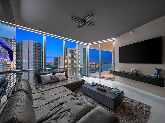 Resort-style residence at Paramount Miami Worldcenter, the most amenity-rich building in Miami. This high-floor unit offers 2BD+ den, 3BA, and a spacious 1,753 sq.ft. interior/1,952 sq.ft. total (per builder). The private elevator foyer welcomes you into a sleek home with 10ft. floor-to-ceiling impact glass, and panoramic views of the bay, intracoastal, & skyline. Upgrades include a custom wall fireplace, LED lighting throughout, upgraded fixtures, and a designer custom paint job, elevating the home’s elegance. The European kitchen features custom cabinetry, a waterfall-edge island, & top-of-the-line appliances, flowing seamlessly into the open living & dining area. Paramount delivers a true resort lifestyle with multiple pools, full-service spa, fitness center, sports courts, & more.