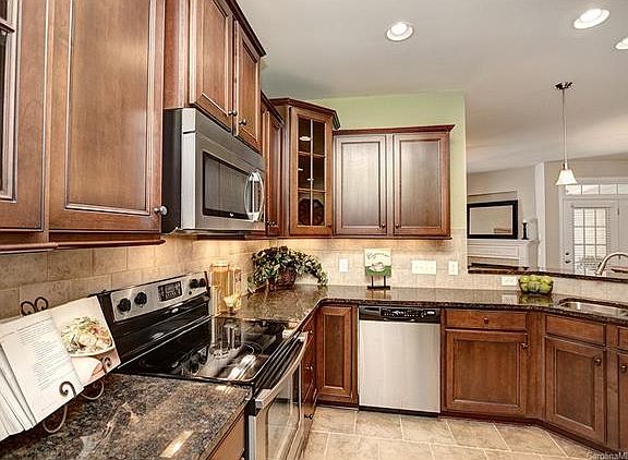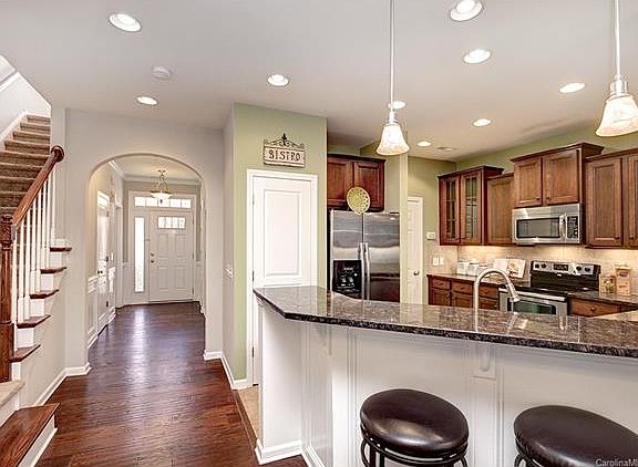 Looking for an amazing townhome that is move-in ready w/ great upgrades, here it is! Walk to elementary & middle schools! Home boasts wood floors, upgraded 42" cabinets, granite, SS appliances (all remain). Bar stool area for casual dining option. Master w/ trey ceiling & bath (separate shower, tub, raised dual vanity). Fresh, neutral paint. Screen porch overlooks private, treed area. Small loft area at top of stairs is perfect for a desk or sitting area. Enjoy neighborhood pool & clubhouse.