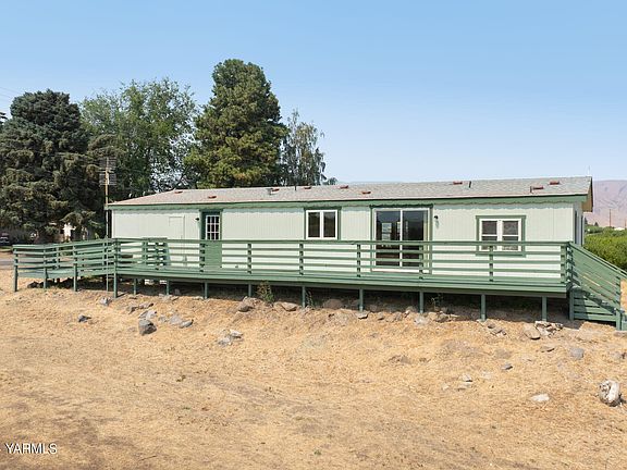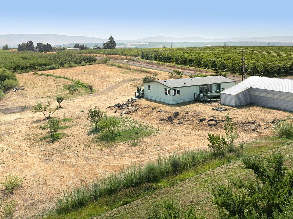 Welcome to your slice of Tieton country living! This 3-bedroom, 2-bath double-wide home sits on 2 acres and features a spacious 920 sq ft shop/detached garage. Inside, you'll find a well-designed floor plan with vaulted ceilings throughout the living room and kitchen. The living room, with its cozy pellet stove and bay windows, seamlessly flows into the dining area and light-filled kitchen. The laundry room is conveniently located next to the kitchen and offers extra storage. The primary bedroom boasts a large bathroom and double closets, while the other two bedrooms and guest bath are thoughtfully situated on the opposite side of the home. Outside, relax on the deck and enjoy views of the nearby orchards and hills, or spread out and enjoy your hobbies! With brand new flooring and a freshly painted exterior, this move-in-ready home is perfect for those seeking tranquility and space!