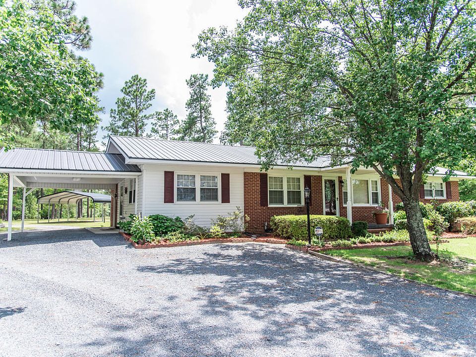 2.65 ACRES on the edge of Hoke County! This private oasis includes a very well maintained 3 bedroom, 2 bathroom home which sits on a large lot with mature Pines, Bradford Pears, Grapevines, & an adorable red barn shed with power. Home has many upgrades to include vinyl windows, water heater (2012), metal roof (2015), security system, & blue stone gravel drive. Inside, you will find carpeted bedrooms & Living Room (hardwoods underneath) with lots of closet space & tiled walk in shower in Master Bedroom. If you're looking for a peaceful retreat, look no further!