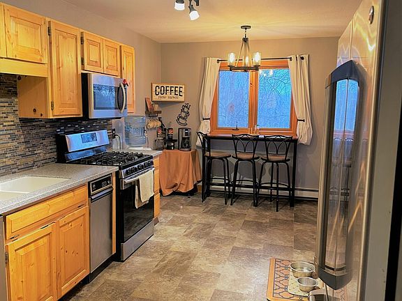Beautiful Alaskan home that offers views in a prime location. Home has a ''Man Cave'' with a bar. Several updates include a new boiler and hot water heater in 2017. It has an insulated bunk house with kennel & storage shed. Both have electricity to them. Home sits on top of almost 4 acres! With great views of the mountains!